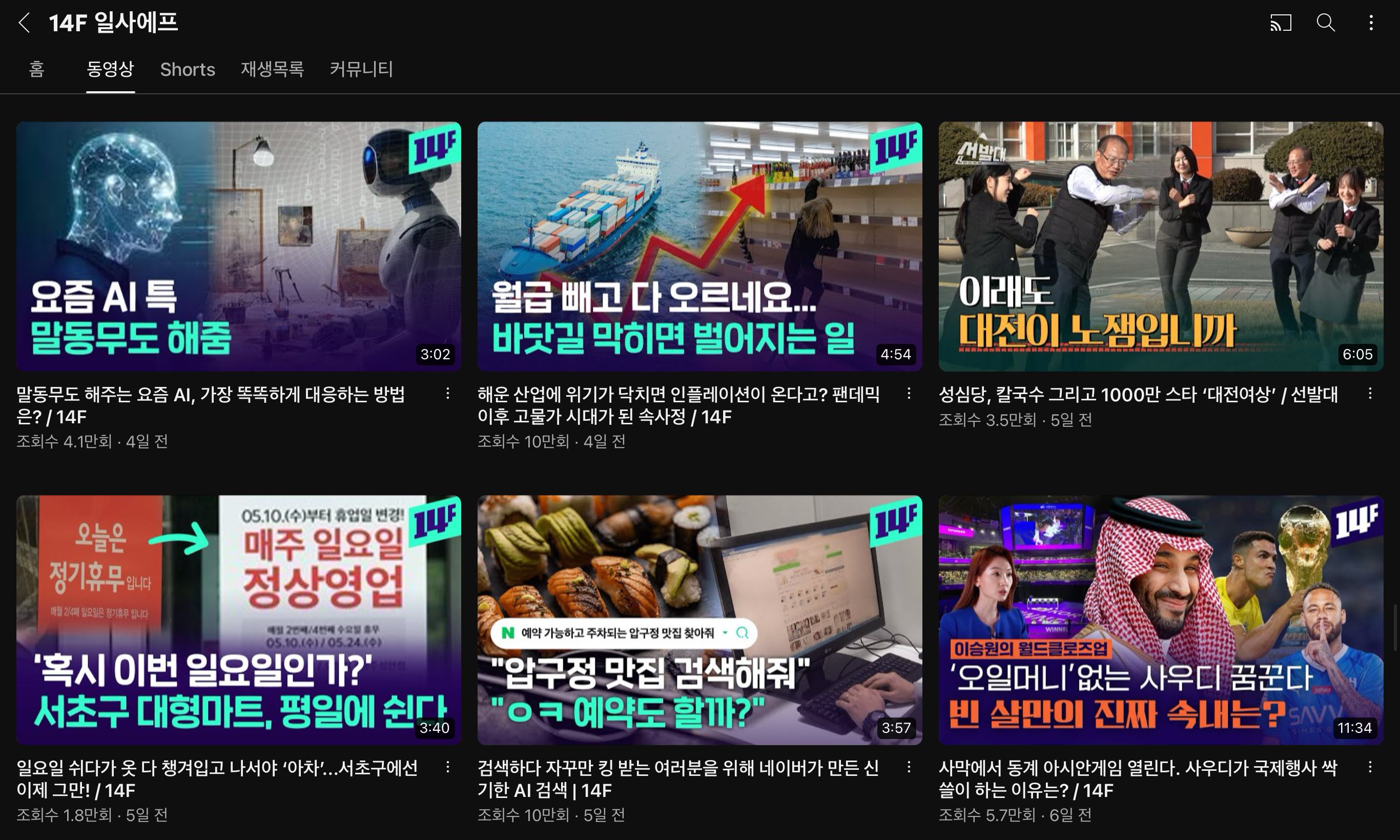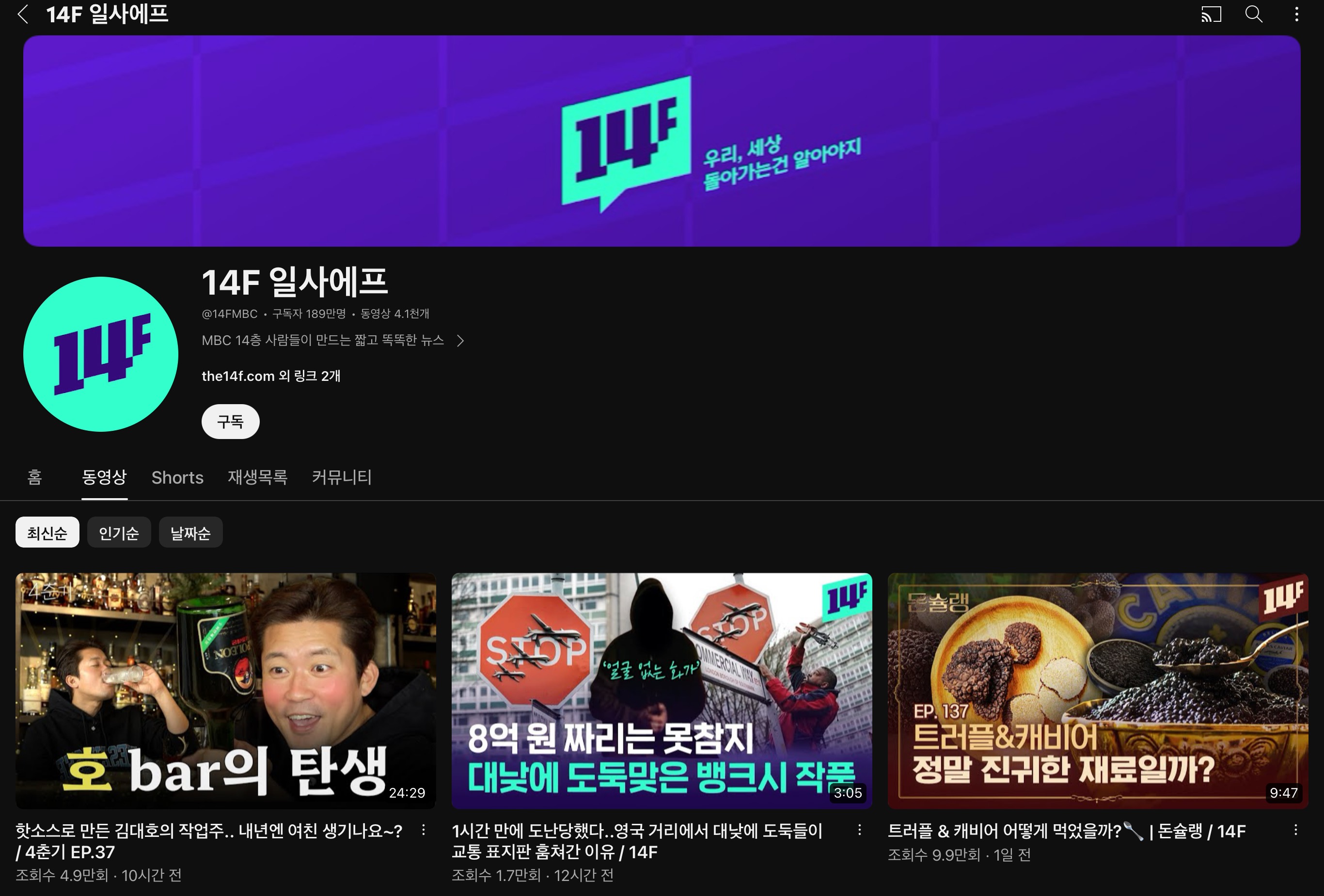 일사에프 채널로 들어가서 최신 동영상들을 보면 사실, 그 정체성이 눈에 잘 들어오지 않는다. "뭐 하는 채널이지...?" 싶다.